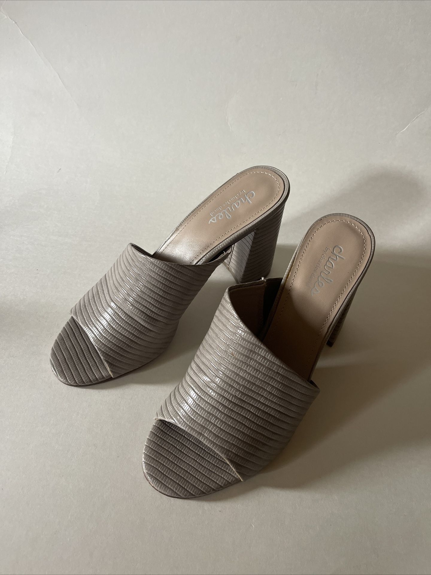 charles by charles david Stunning Printed faux Leather Block Heel Nude Mules Size 8M Tan Peep