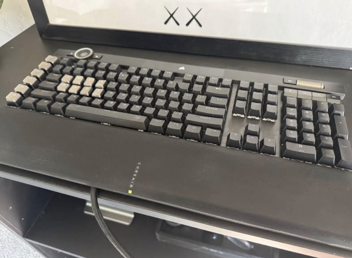 Selling my Corsair K100 RGB mechanical gaming keyboard. Everything works perfectly, I just downsized my setup. This is Corsair’s flagship keyboard and normally sells for $200+ new. Features: • Premium mechanical gaming keyboard • Per-key RGB lighting • Dedicated media controls + volume wheel • Extra macro keys for gaming or productivity • USB passthrough • Comfortable magnetic wrist rest included • Super fast response time for gaming Perfect for: • Gaming setups • Streaming setups • Productivity or coding desks Fully functional and ready to plug in and use. $50 OBO – pickup preferred.