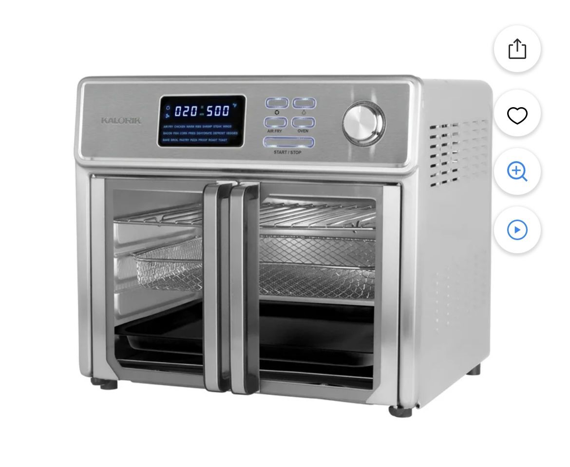 The Kalorik Maxx is a versatile, 26-quart digital air fryer oven that combines up to 14 appliances into one, featuring Turbo MAXX technology that cooks up to 67% faster than traditional ovens. It features a 500°F max temperature for searing, French doors, and 21 smart presets. Features grill, roaster, toaster, rotisserie, dehydrator, warmer, broiler, and pizza oven.