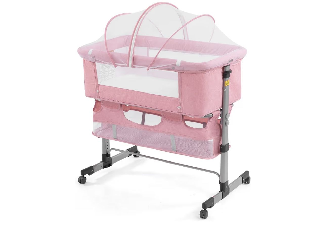 3 in 1 Travel Baby Crib,Baby Bed with Breathable Net,Adjustable Portable Bed for Infant/Baby with Detachable Mosquito net and Mattress,Pink