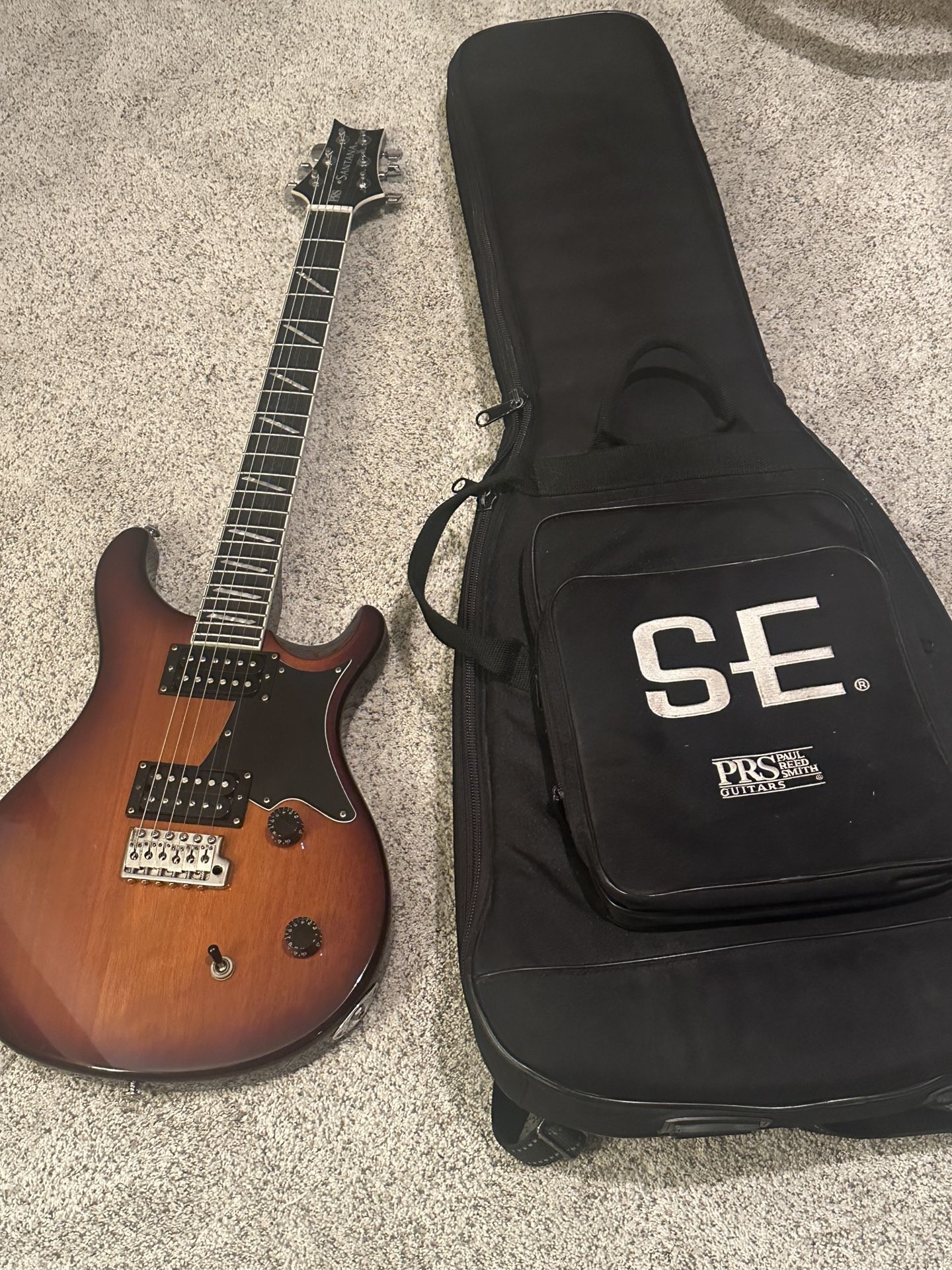 Beautiful looking and great sounding this 2003 PRS Santana has been cleaned, adjusted and set up with new strings. comes with original padded case. Tobacco burst front and deep burgundy back straight neck, working truss rod, intonation set, good frets. Pickups read 9+, sound very nice. Cosmetically in players grade condition with various usage marks.