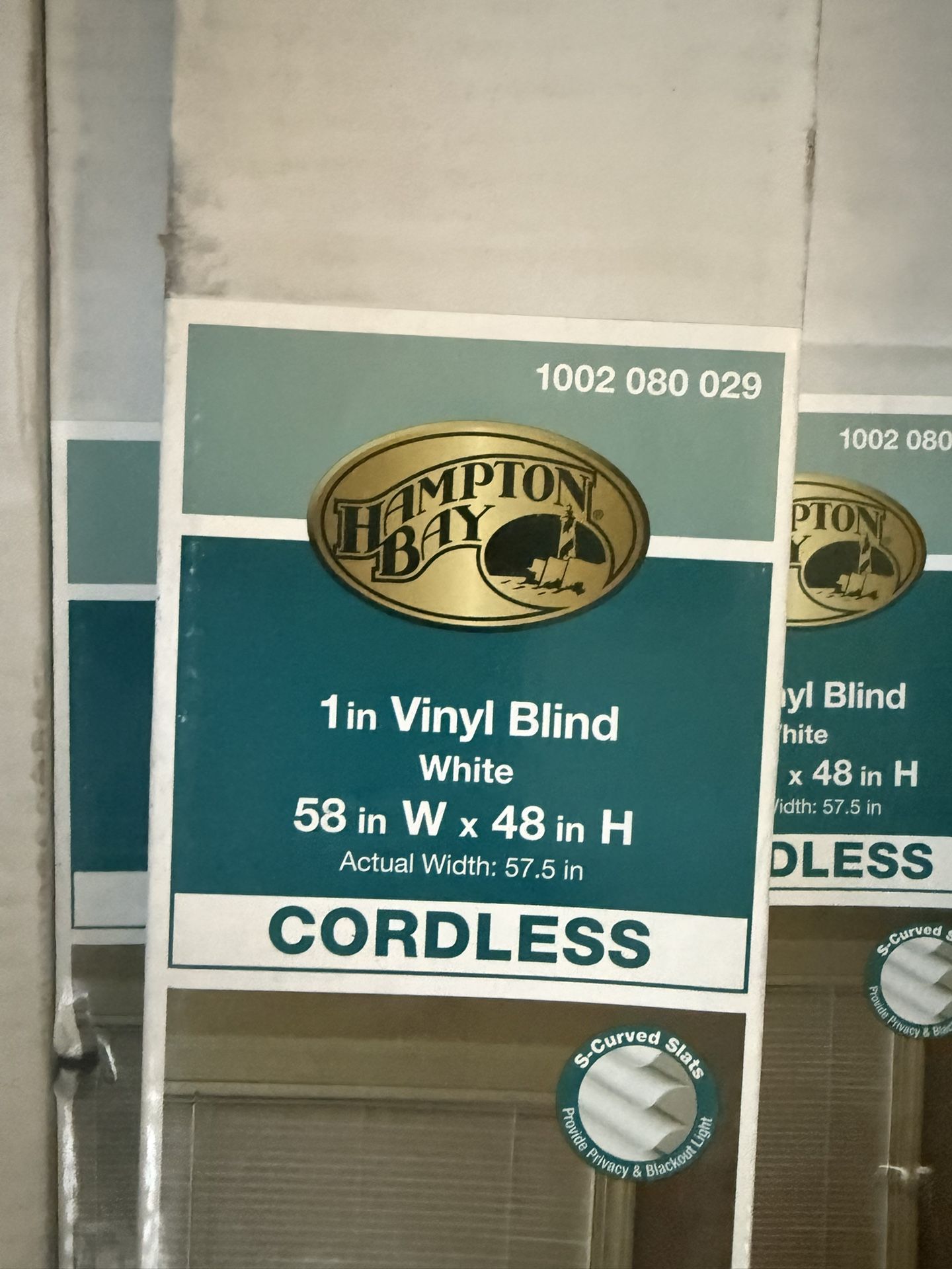 White cordless blackout (3) boxes 58Wx 72H (4) boxes 58Wx 48H