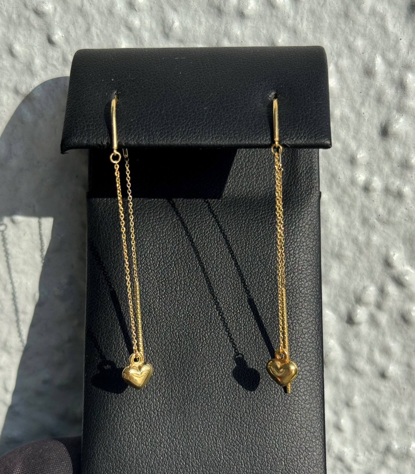 This gorgeous drop two side yellow gold heart earrings is made of 10k yellow gold. Total weight: 1.20 grams. ππ€ looks very gorgeous π₯ Perfect gift! β€οΈππ We buy Rolex and Audemars, patek . Do layaway in VIP PAWN Coral Springs π₯ππΈ