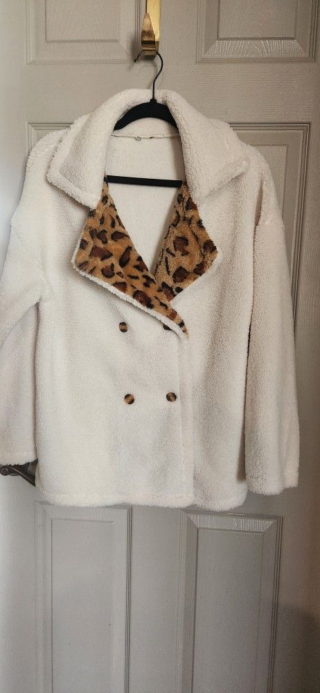Size L NEW Polyester Teddy Coat Jacket Animal Print / White