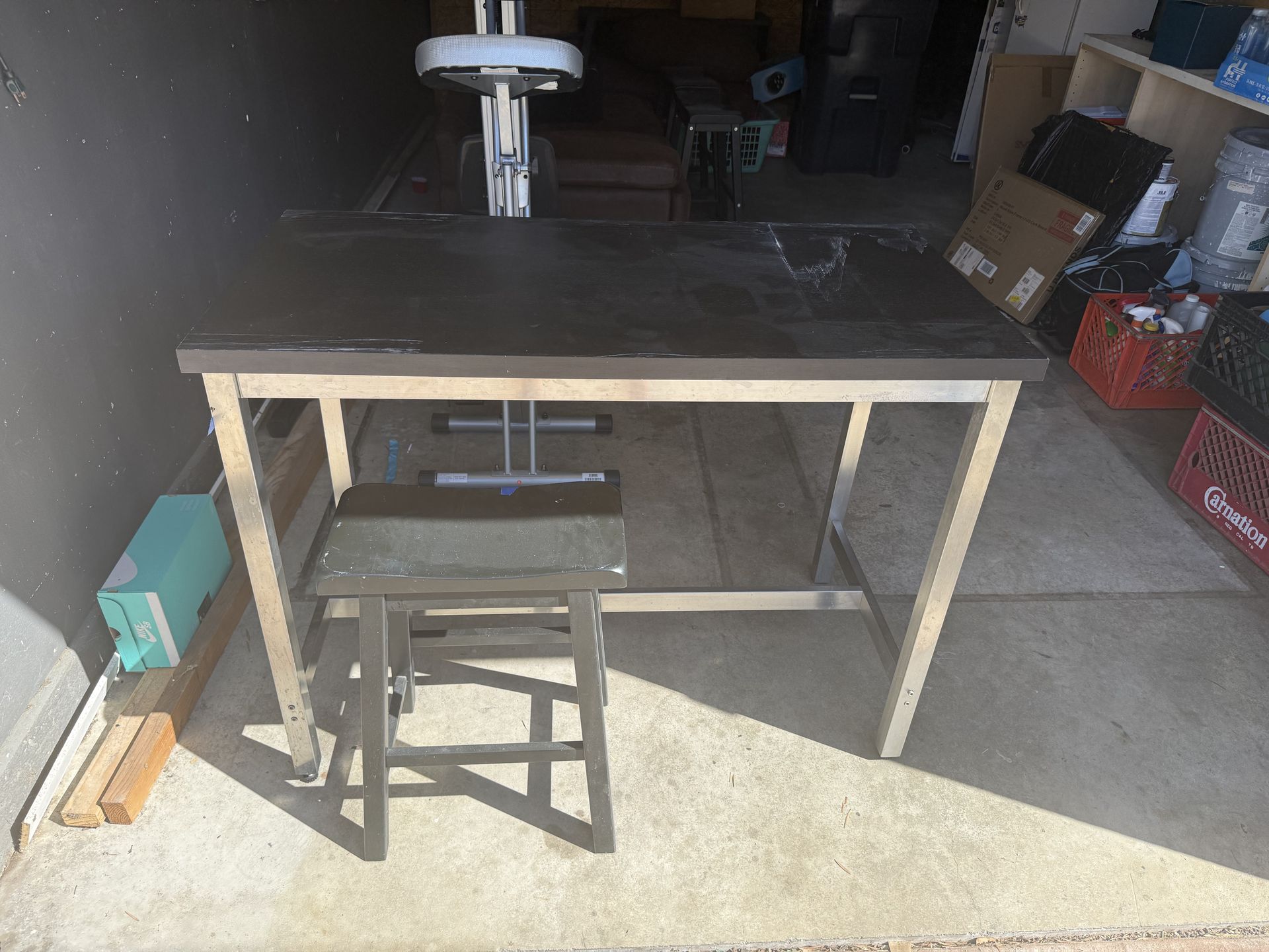 Table and 4 chairs. Top needs to be refinished but very solid. Requires pick up.