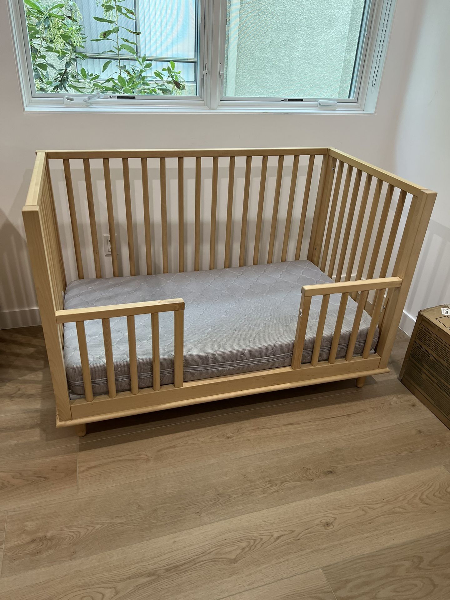 Conversion kit & mattress included (originally listed $1,300) Heirloom Wheat finished crib are expertly crafted of planation grown solid mango wood. Masterfully crafted with mortise-and-tenon construction, and tongue-and-groove joinery for structural integrity. Mattress platform, which is made of metal, offers two height options to accommodate your growing baby. Platform can be adjusted to the following heights: 7.5", 10.5". Finish is hand-applied using child-safe, water-based paint, that provides durability, depth of color and richness to each piece of furniture