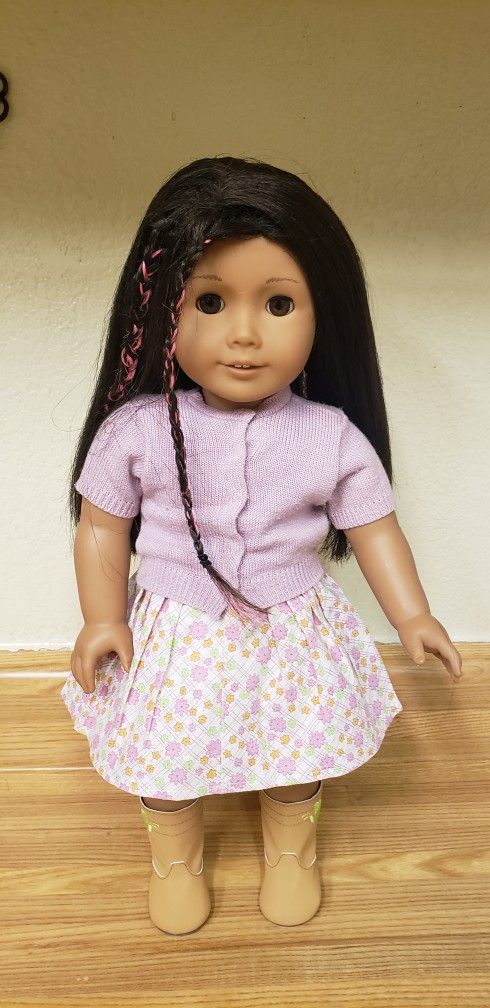 American Girl Doll, Truly me #82,... Brown eyes, dark brown hair, medium skin tan,.. really nice and clean,....