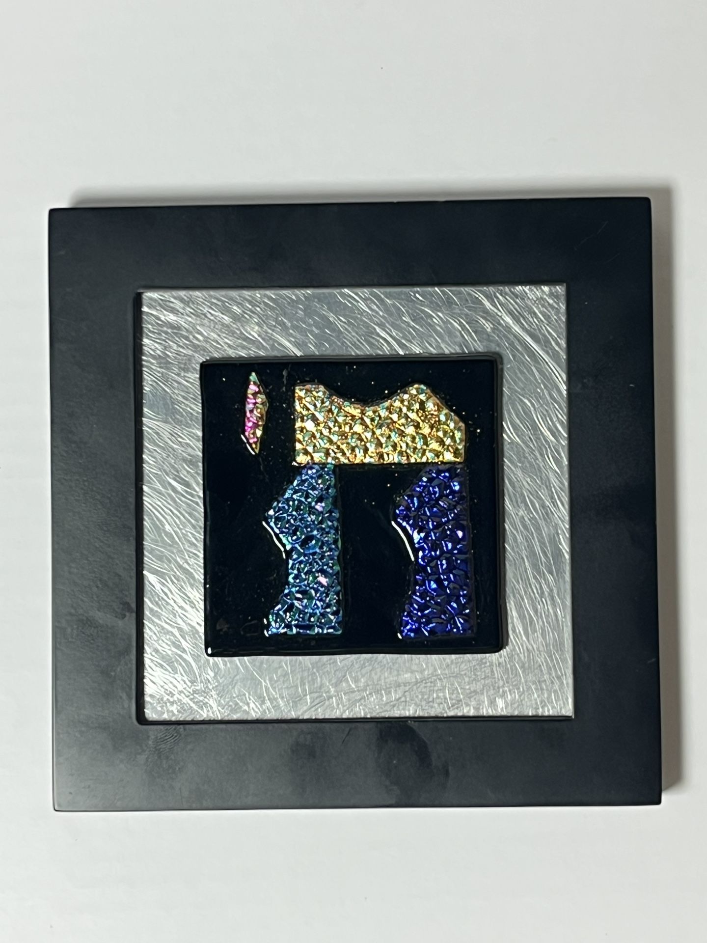 Handmade Dichroic Glass Chai Judaica – Fused Glass Panel in Frame