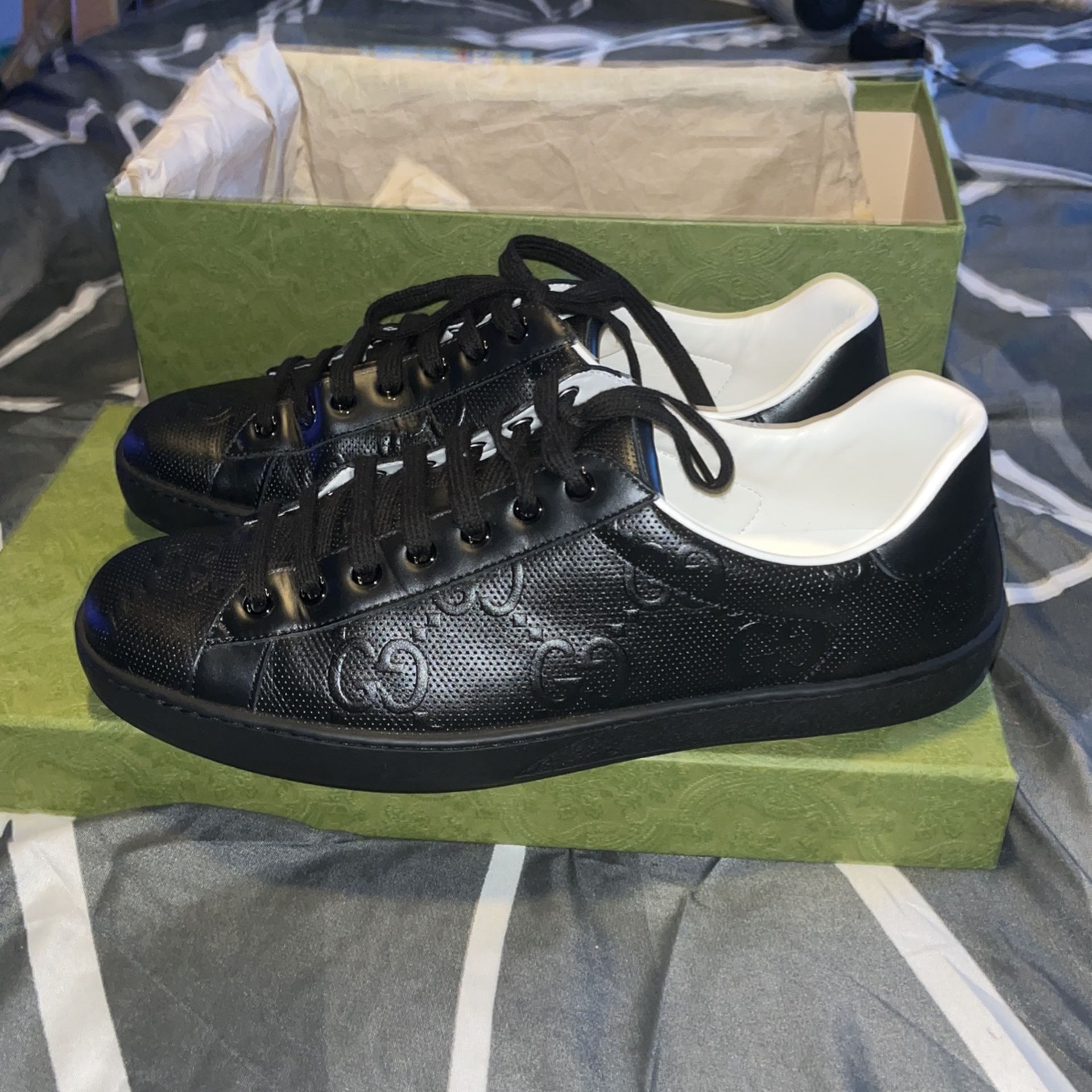 Men's New Ace GG-Embossed Leather Low-Top Sneakers