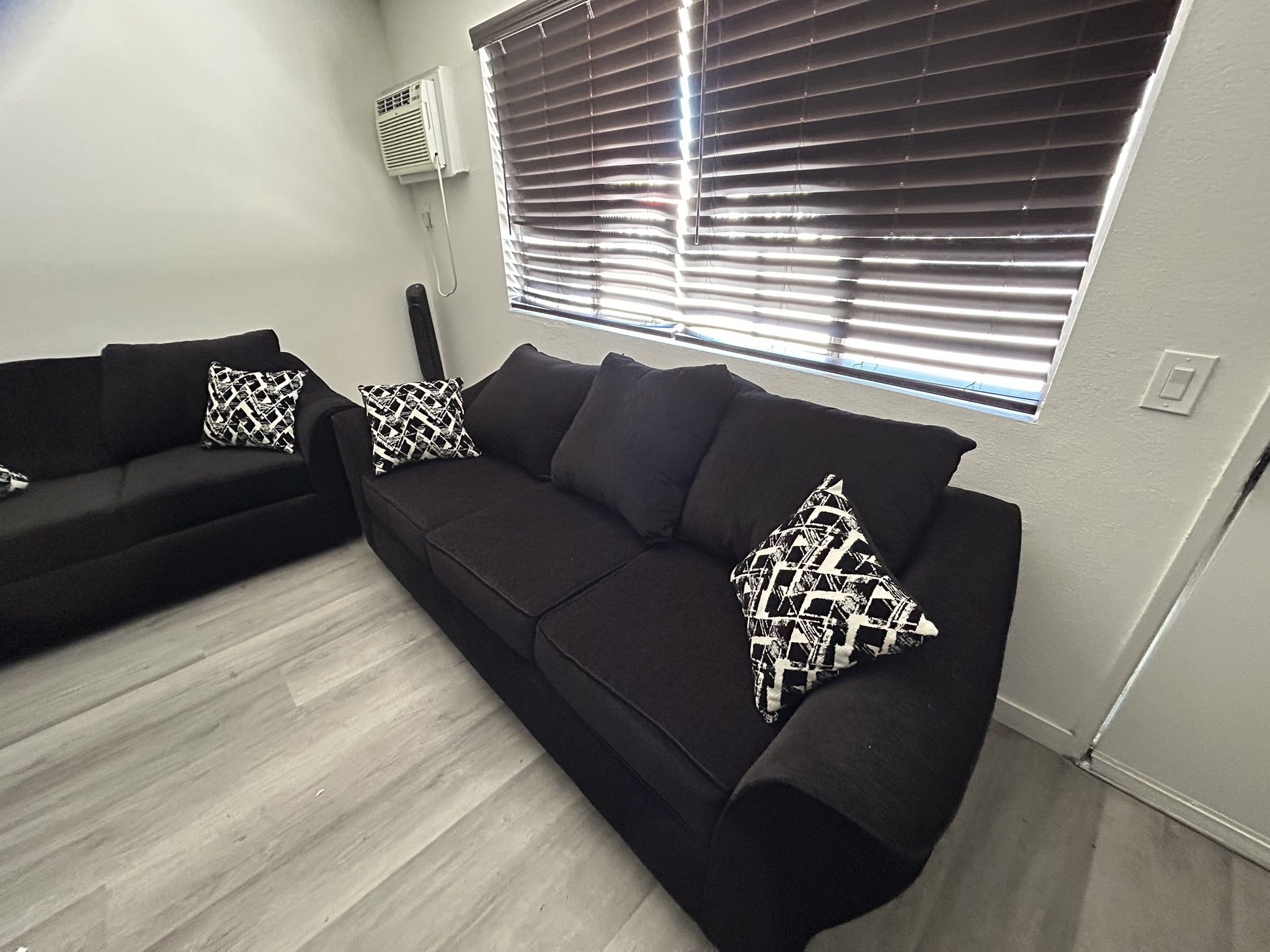 Black couch set 3 seater and 2 seater fabric couches lightly used OBO WILLING TO NEGOTIATE