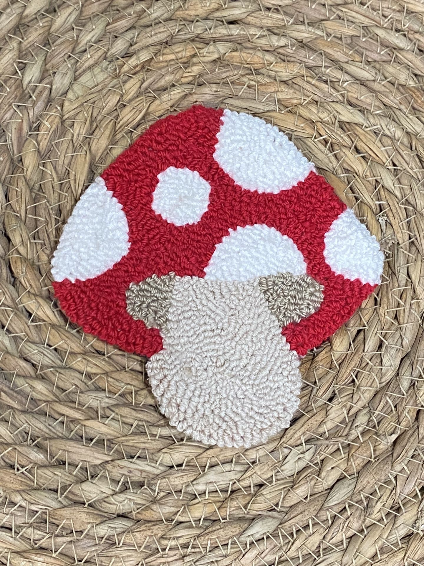 Handmade punch needle mushroom coaster