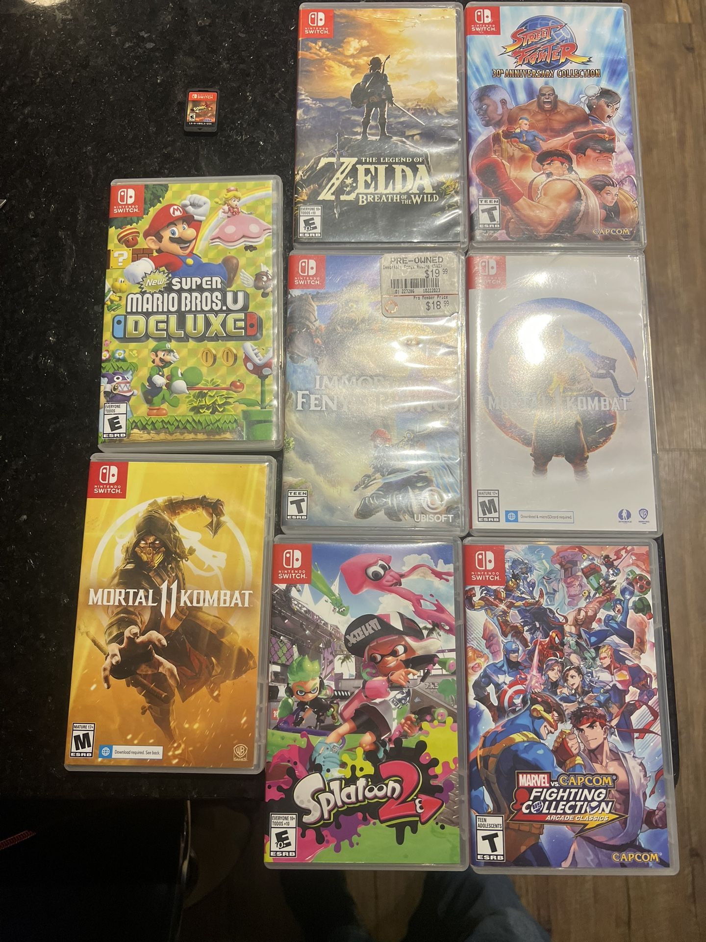 Nintendo switch The box For conect the TV 2 remote controls Nintendo switch original controls Games Sonic forces Super Mario deluxe Inmortals fénix risign Mortal combat 11 Street fighter 30 years aniversari Mar el Capcom street fighter Mortal Kombat 1 Splatoon 2 Super Mario wonder Zelda breath of the wild