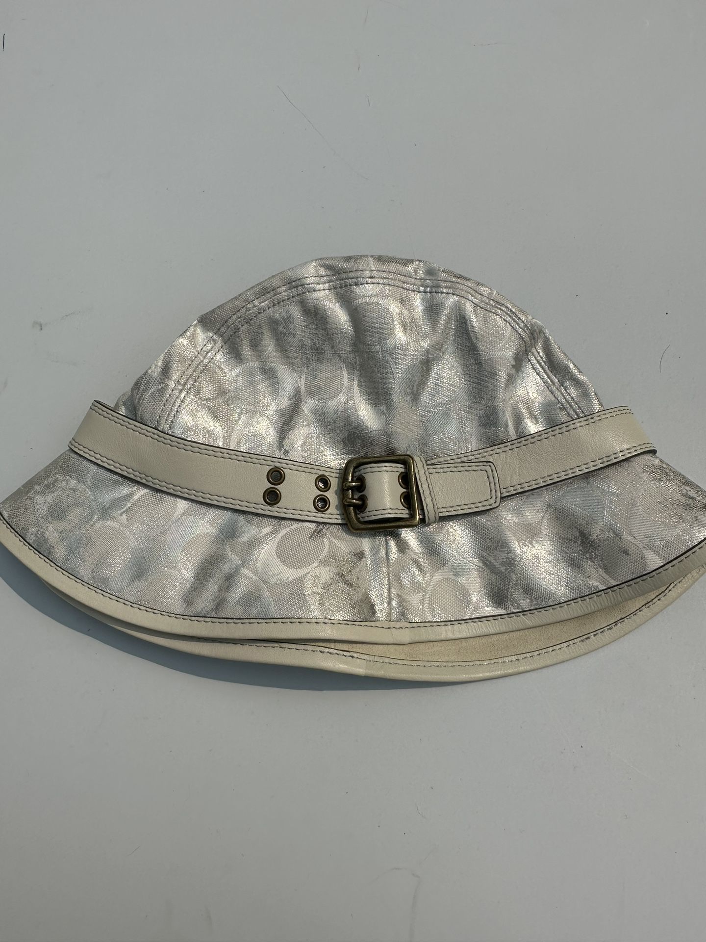 Vintage Coach Bucket Hat Ivory With Leather Trim