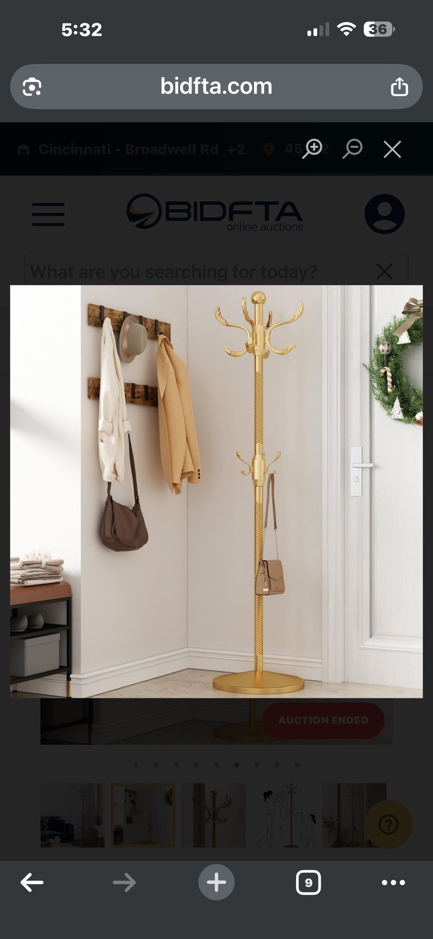 Gold Metal Coat Hanger Rack Stand Entryway Tree