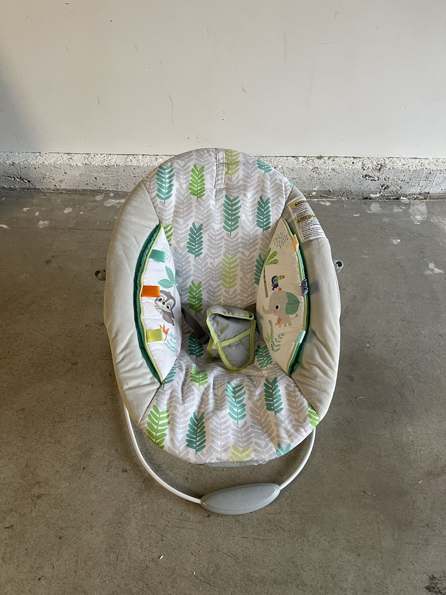 Used but in good condition , perfect for when you need to shower or be in the kitchen , or even when your sitting on the couch reading a book Baby will relax