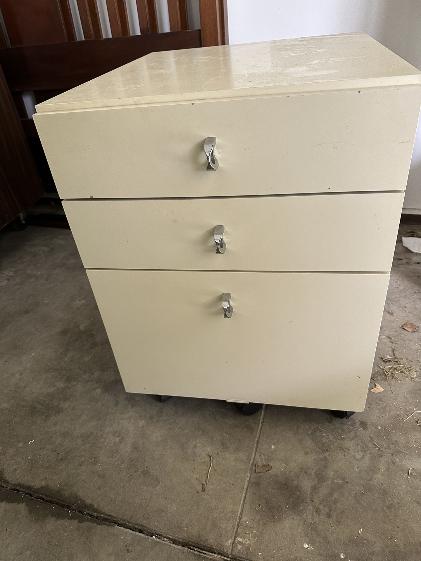 Moving Sale. Three drawer chest on wheels. Excellent condition.