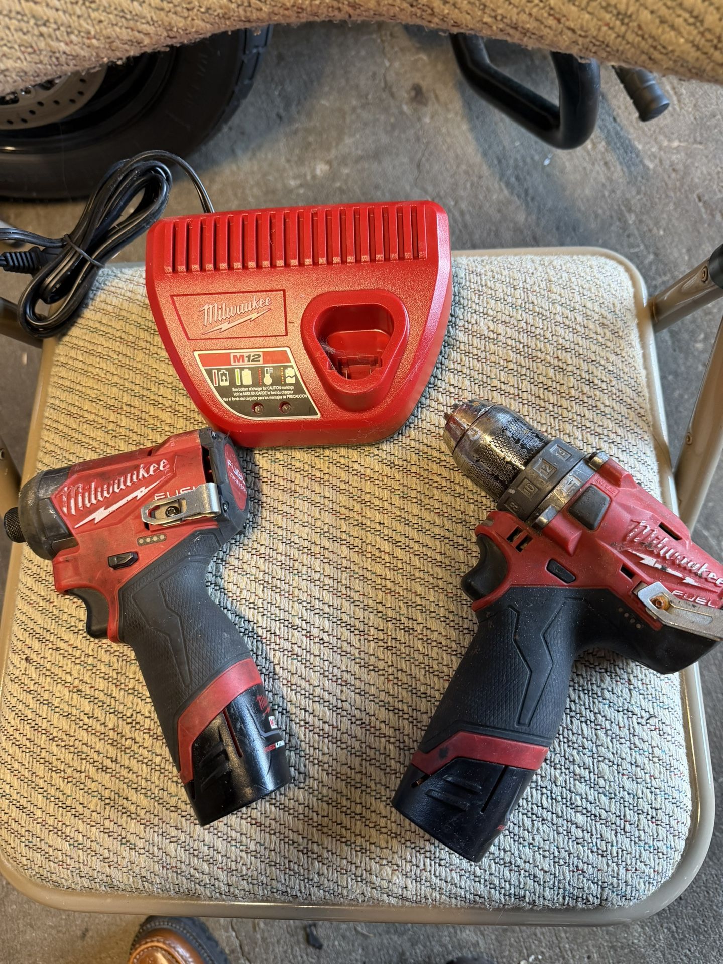 Works perfect. 2 batteries and charger The impact is newer. Comes with bag