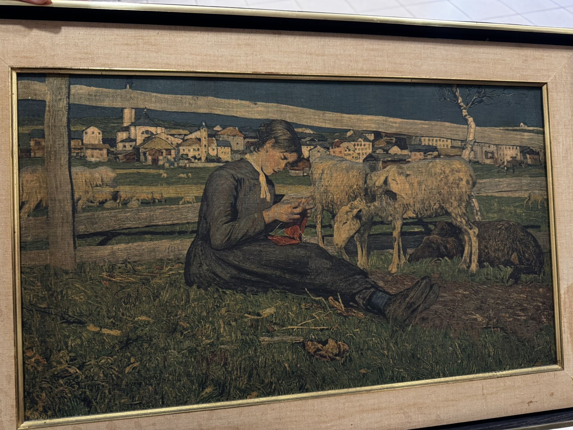 Canvas . Knitting girl at the fence Giovanni Segantini . 24”X14”. Is A Copy