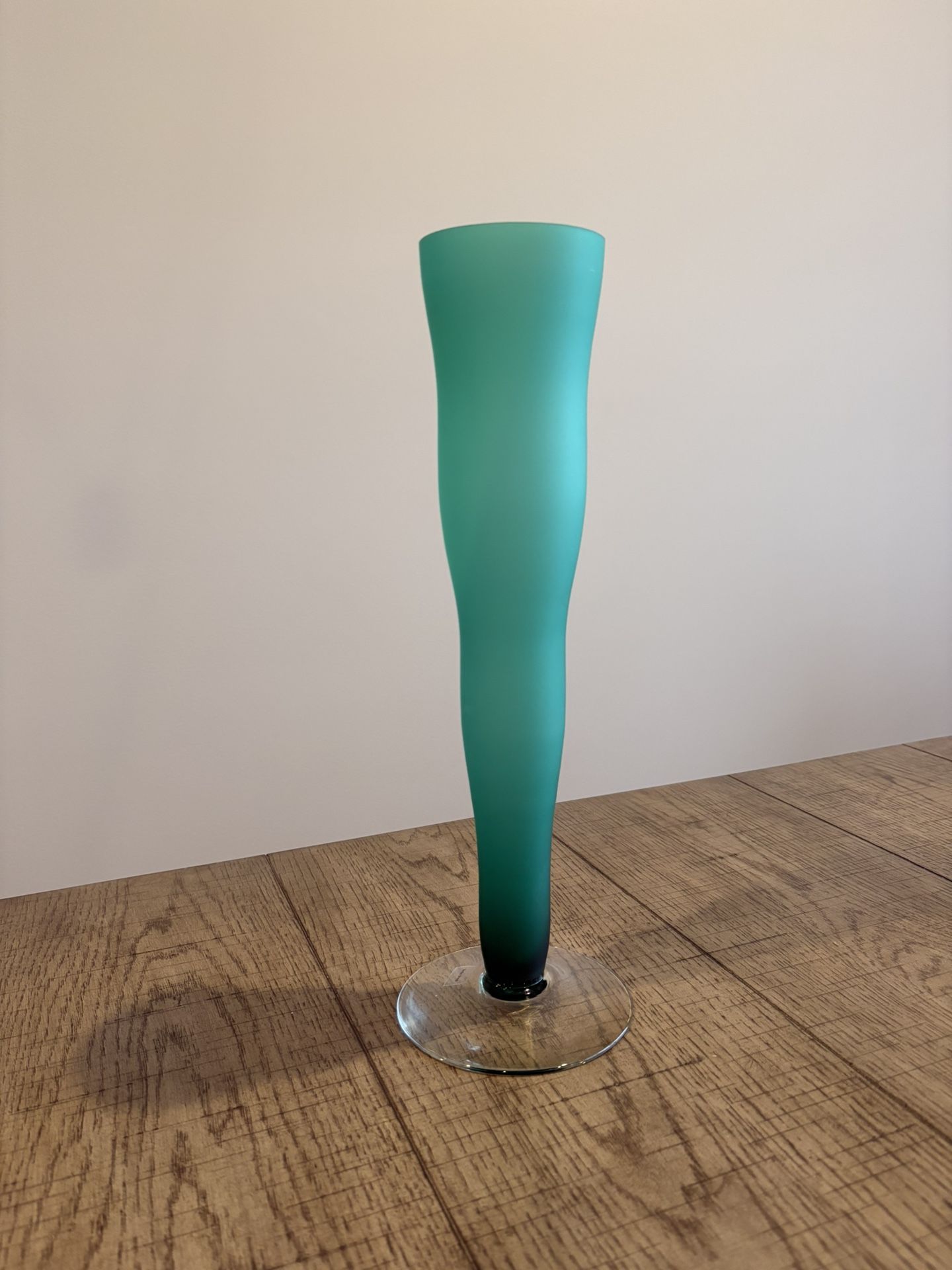 BodaNova blue-green satin modernist art glass vase. Like new condition. No damage. Wavy body. Stands approximately 14.5” tall. Base is 4.5” in diameter. Marked “Boda Shop” and “Made in Portugal”.