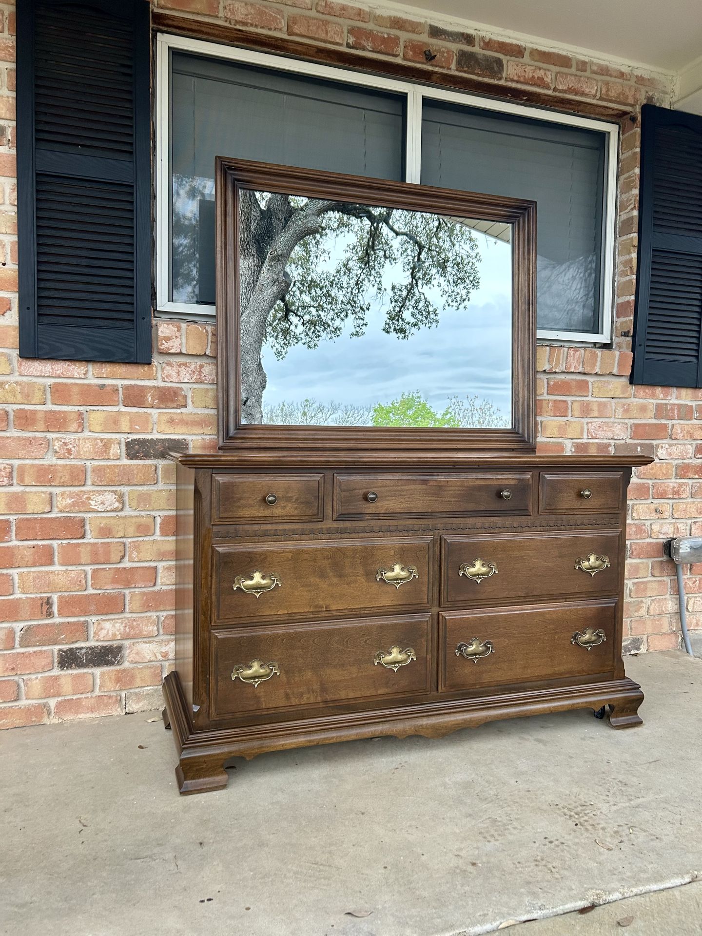 Vintage Ethan Allen double dresser with wall mirror in beautiful solid maple. $375 Dresser W56” H32.5” D21” Mirror 45 x 35 Pick up Universal City 78148