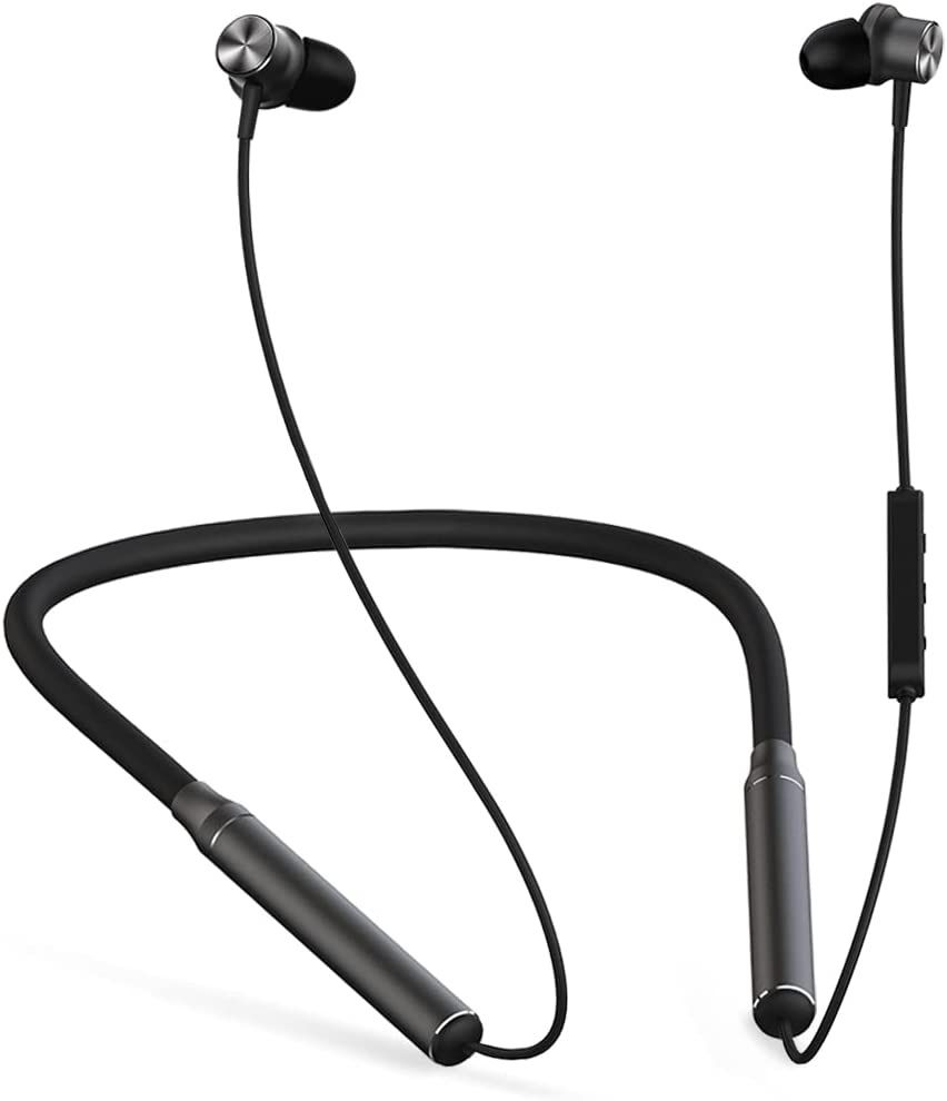 Neckband Bluetooth 5.0 Headphones with Microphones, Bluetooth Earbuds with Deep Bass HiFi Stereo, 24H Playtime, Portable Magnetic Wireless Earphones, Clear Calls, Lightweight Fit -Black
