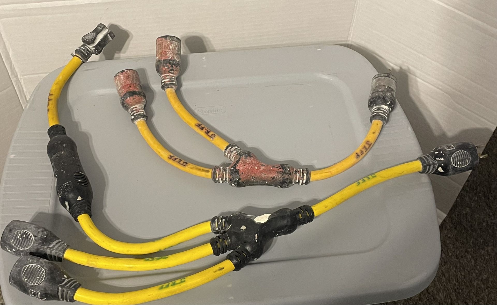 TWIST CONNECT 3 Way Prong Electrical Power Supply Extension Cords (2 Sets) Pick-Up Only! Location: Major Cross Streets: Lake Mead Pkwy & Warm Springs Road Next to the Cadence Marketplace in Henderson, NV.
