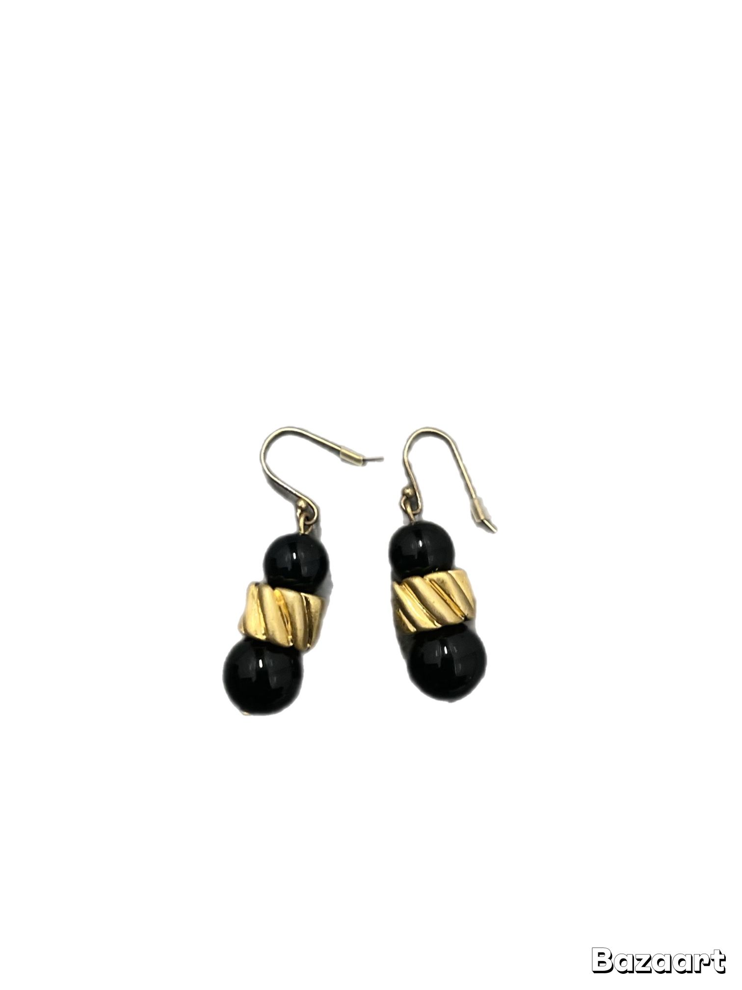 Chic Black Onyx & Gold Tone Dangle Earrings