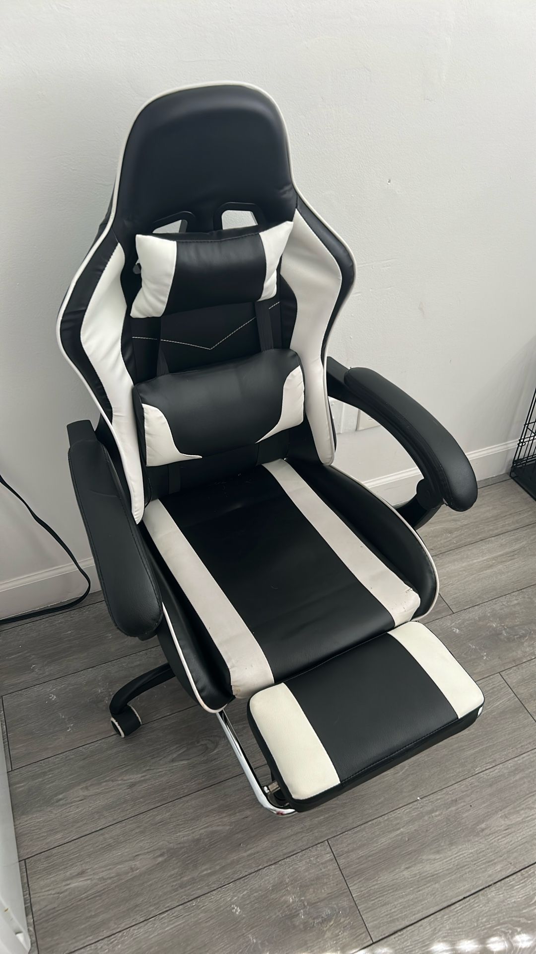 It’s great chair all around has some very very minor cosmetic defects but it can be cleaned I’m sure and the chair has like a massage type of thing that’s what the cords in the back are for it makes the chair vibrate basically but everything works good just needs a little clean