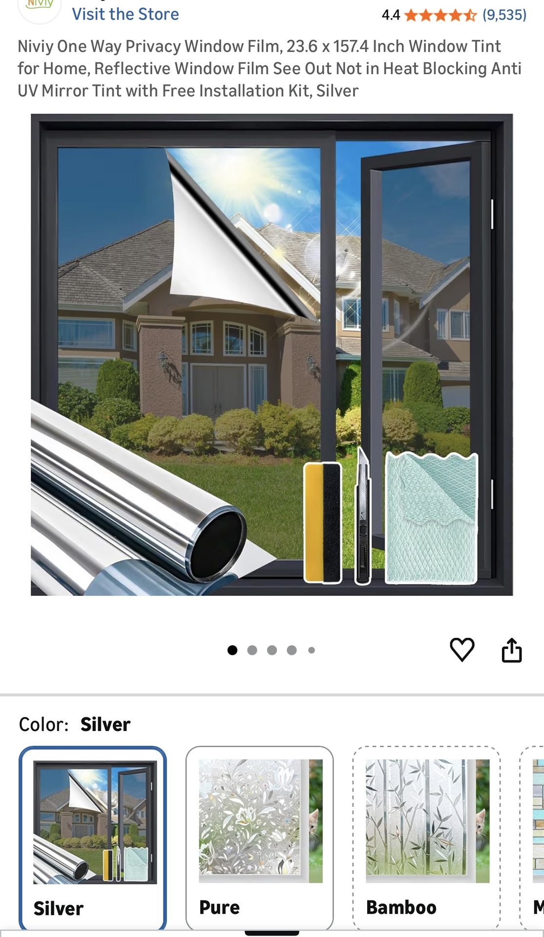 Niviy One Way Privacy Window Film, 23.6 x 157.4 Inch Window Tint for Home, Reflective Window Film See Out Not in Heat Blocking Anti UV Mirror Tint wit