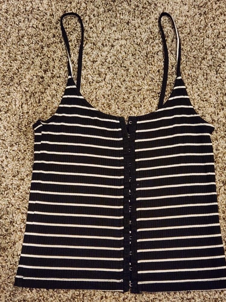 Fairly used, but still looks new. Black and white striped Hooked in middle