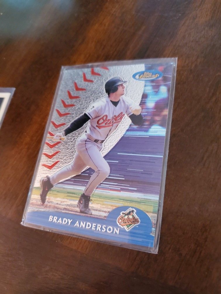 Baltimore Orioles Brady Anderson Baseball Cards Lot '00 Topps Finest Card in NM Condition '95 Topps A.L Leader Insert Card in NM Condition '92 Topps Card in NM Condition '97 Pinnacle Xpress Card NM Condition '90 Score Card in NM Condition '91 Fleer Card in NM Condition '90 Fleer Card in NM Condition '99 Upper Deck Collectors Choice Card NM Condition '90 Upper Deck Card in NM Condition '99 Topps Card in NM Condition '91 Topps Card in NM Condition Cards will come in Penny Sleeves only