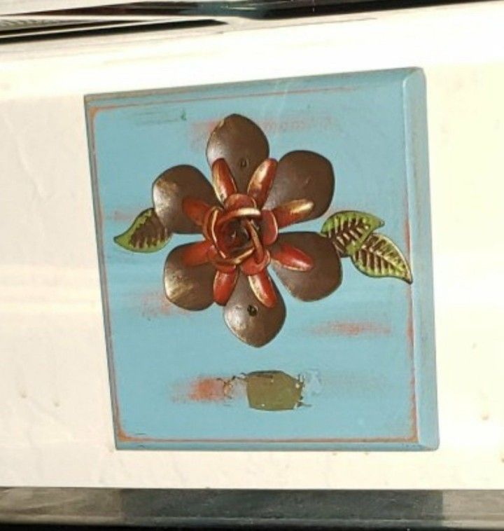 VINTAGE WOOD COPPER FLORAL FLOWER DAISY 3D WALL PLAQUE ACCENT DECOR PICTURE ART