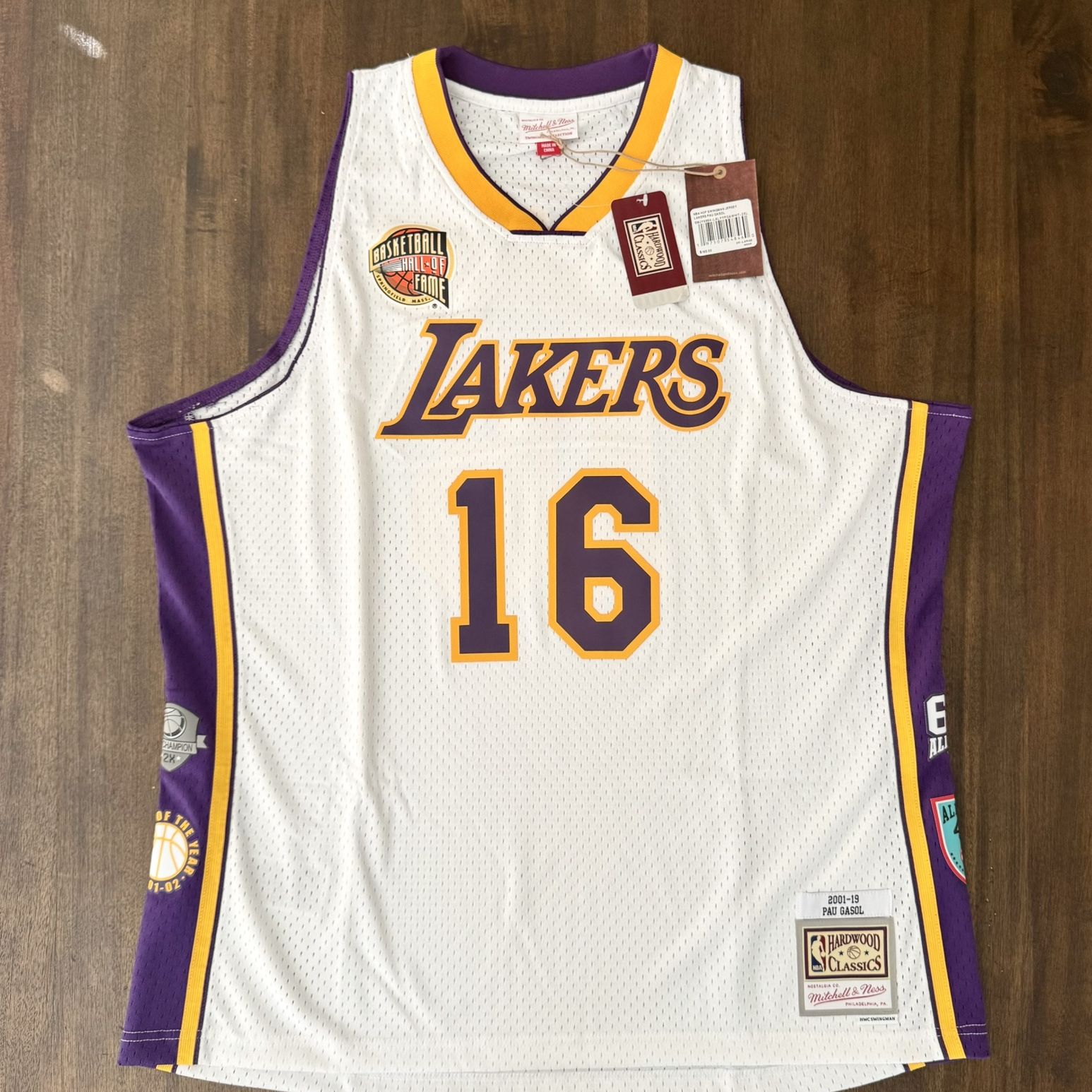Authentic/ Real " Mitchell and Ness" retro Los Angeles Lakers “Pau Gasol" Hall of Fame jersey Brand new/ with taxes & shipping worth $198 ☀️pick up & cash only ⚜️ I have sizes - 2XL, 3XL, and 4XL