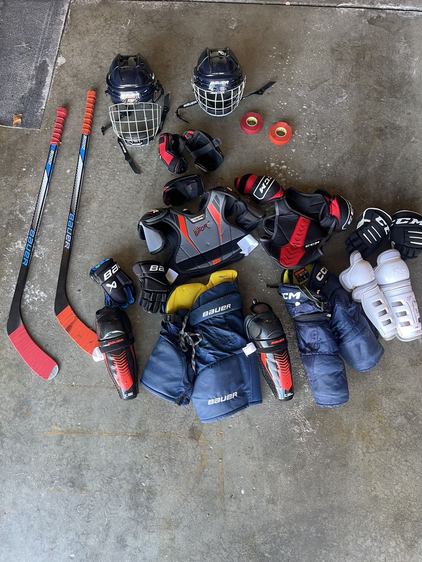 2 sets of hockey equipment. Used very little and is in great shape. Includes everything you see here. $125.00 for one set $200.00 for both.