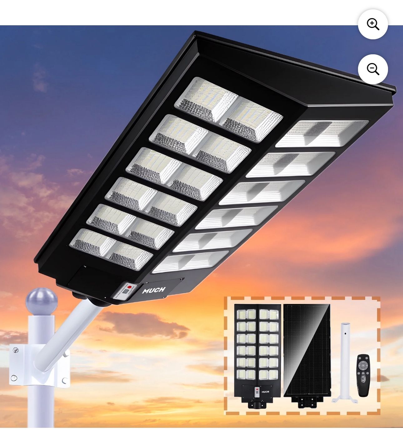 10000W Super Bright Solar Street Light Pole Barn 220° Wide Angel Commercial Parking Lot Lights 35000mAh Outdoor Dusk to Dawn Solar Security Flood Lights w/Motion Sensor Remote Control