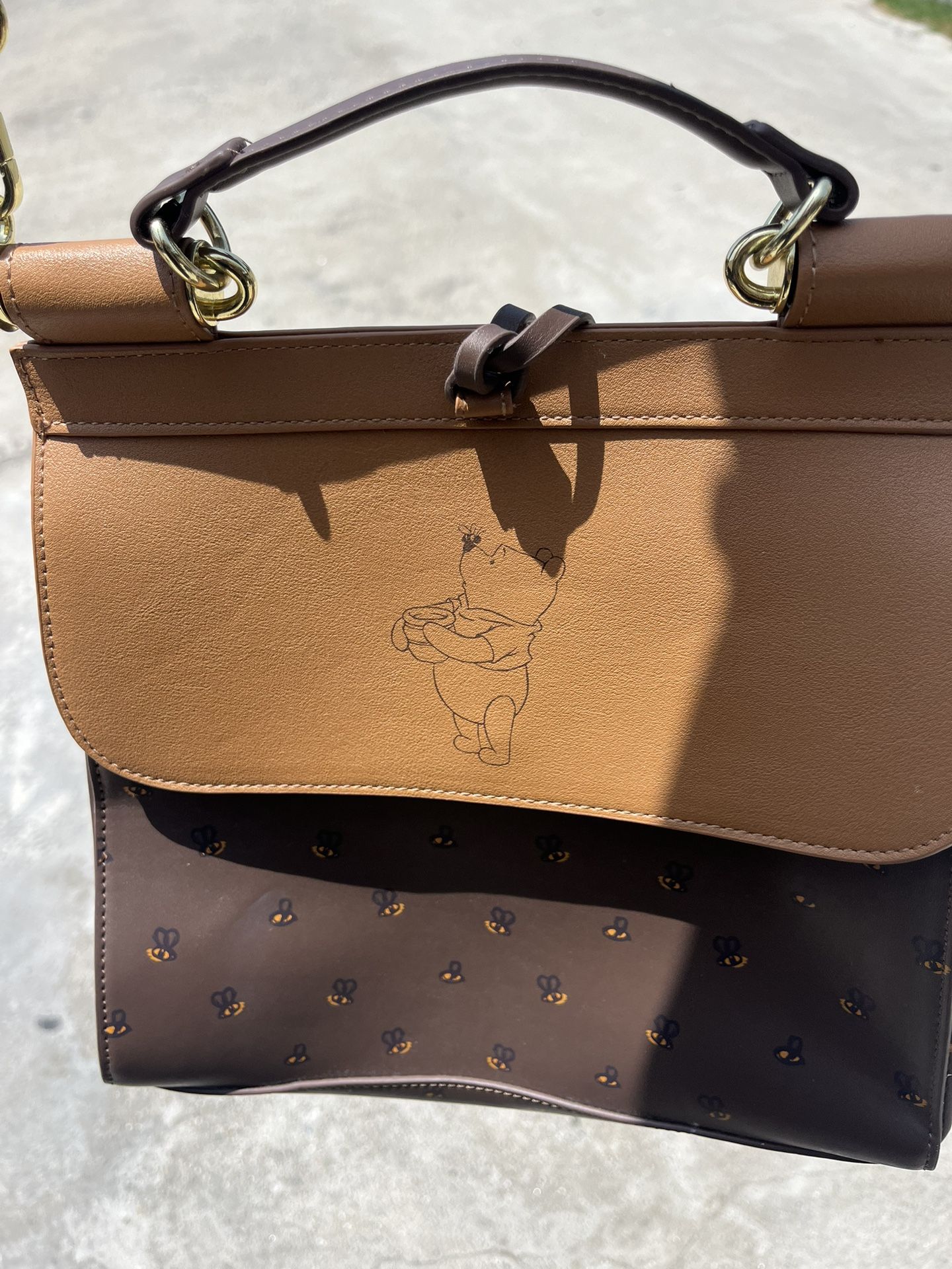 Disney Loungefly Winnie The Pooh Bees Crossbody Satchel Bag Brown Gold Hardware