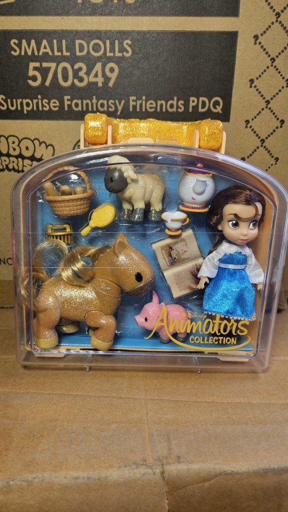 Disney Animator's Collection Belle Mini Doll Play Set with Carrying Case Toy. Book case