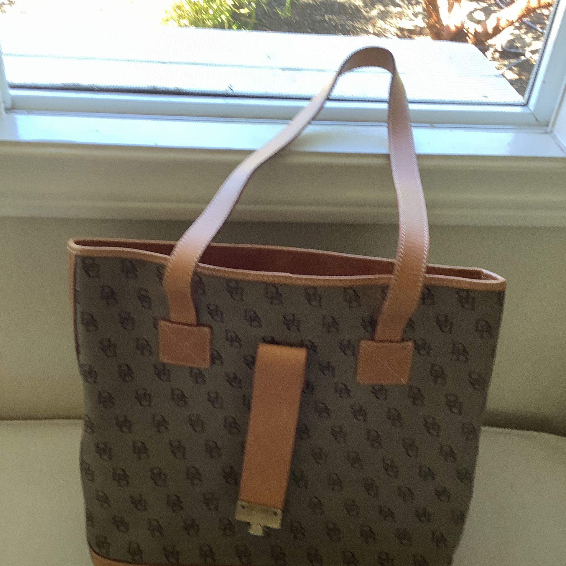 Funny & Bourke leather and canvas purse. 2 inner pockets, one zippered. 12x13 inches.Used once.