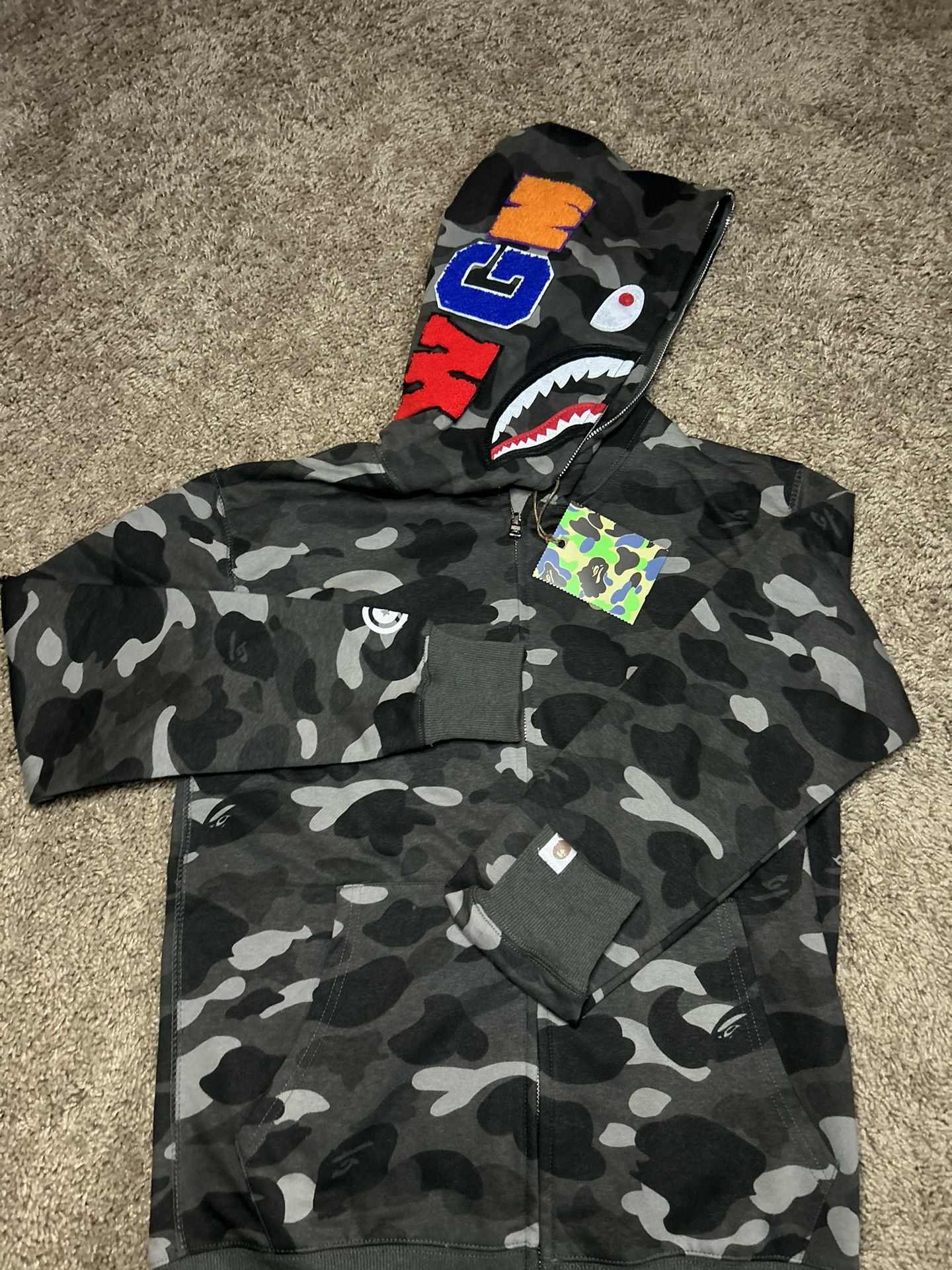 Brand new Size large run small fits like a medium comes with bape tag and bag (one of one is a rep) can work with price