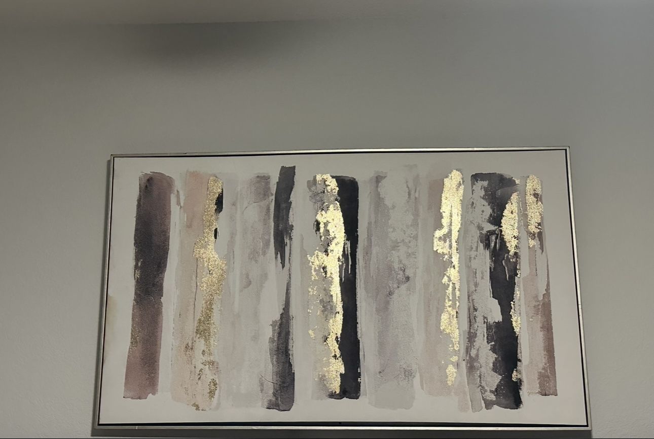 Has a small stain on one side, but it’s not very noticeable when hung. Does not affect the overall look.
