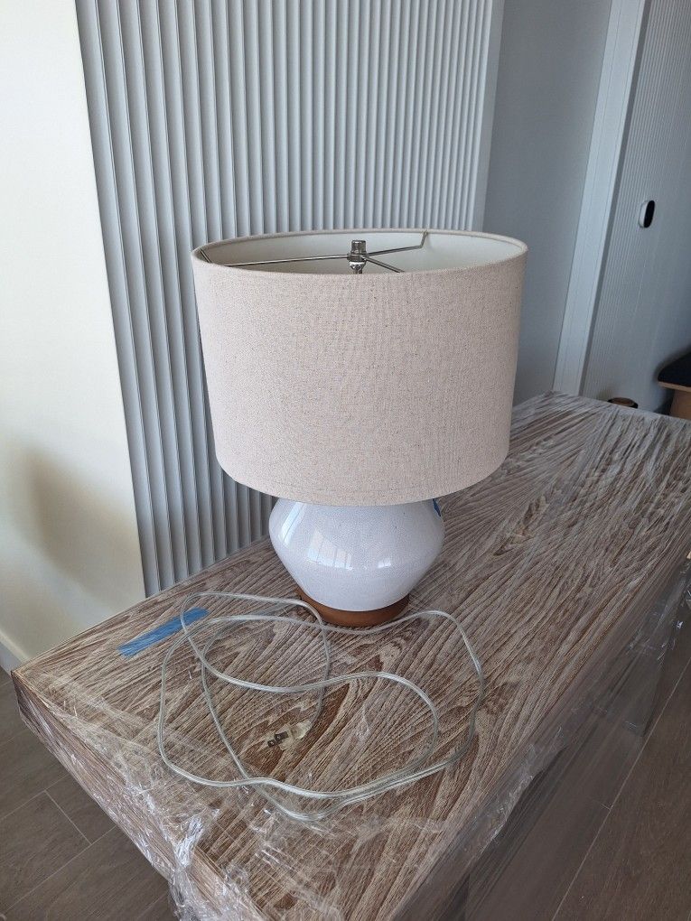 Cream shade and off-white/blue base, this beautiful lamp is very good suit for any desk or nightstand.