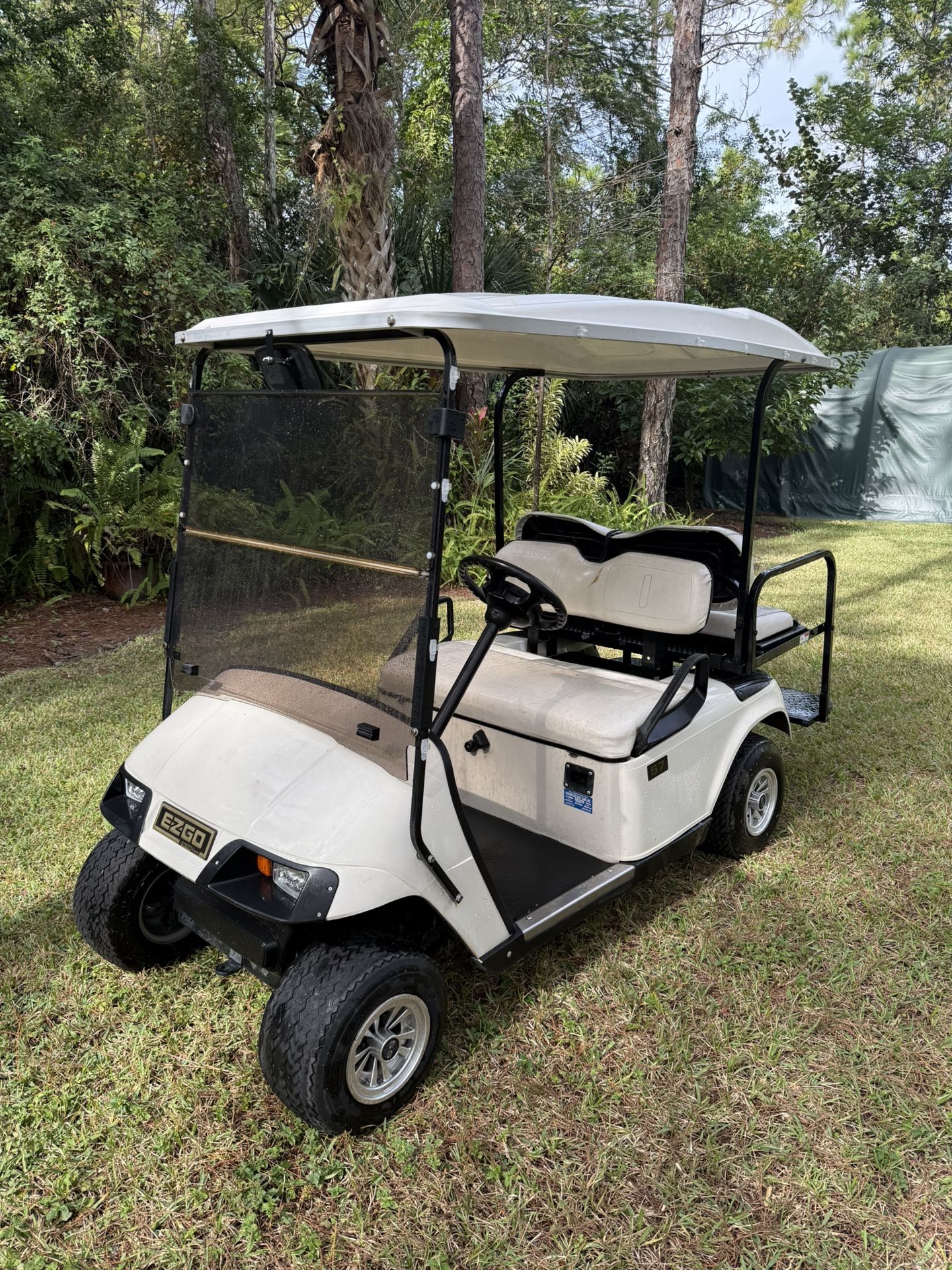 Hello up for sale is my Ezgo Golf Cart! The cart has a list of things on it LED HEADLIGHTS/TAILLIGHTS WINDSHIELD REAR VIEW MIRROR REAR SEAT KIT LONG TOP CIGARETTE OUTLET CHARGER This is a sweet little cart and would be perfect for cruising the neighborhood or playing 18 holes! The cart does have US batteries dated April 2022 and seem to be holding up fine but should be replaced sooner then later. I CAN DELIVER ANYWHERE IN FLORIDA FOR A FEE! Any questions feel free to ask! Asking $1675!