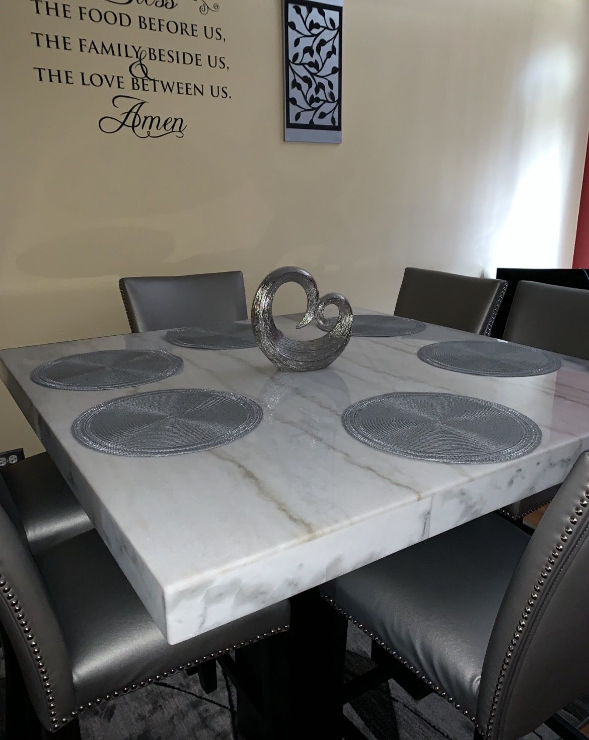Heavy marble table, only comes with 4 chairs! Counter top height, in very good condition! Has small crack on corner but you can barely see it. So it selling for a low price.
