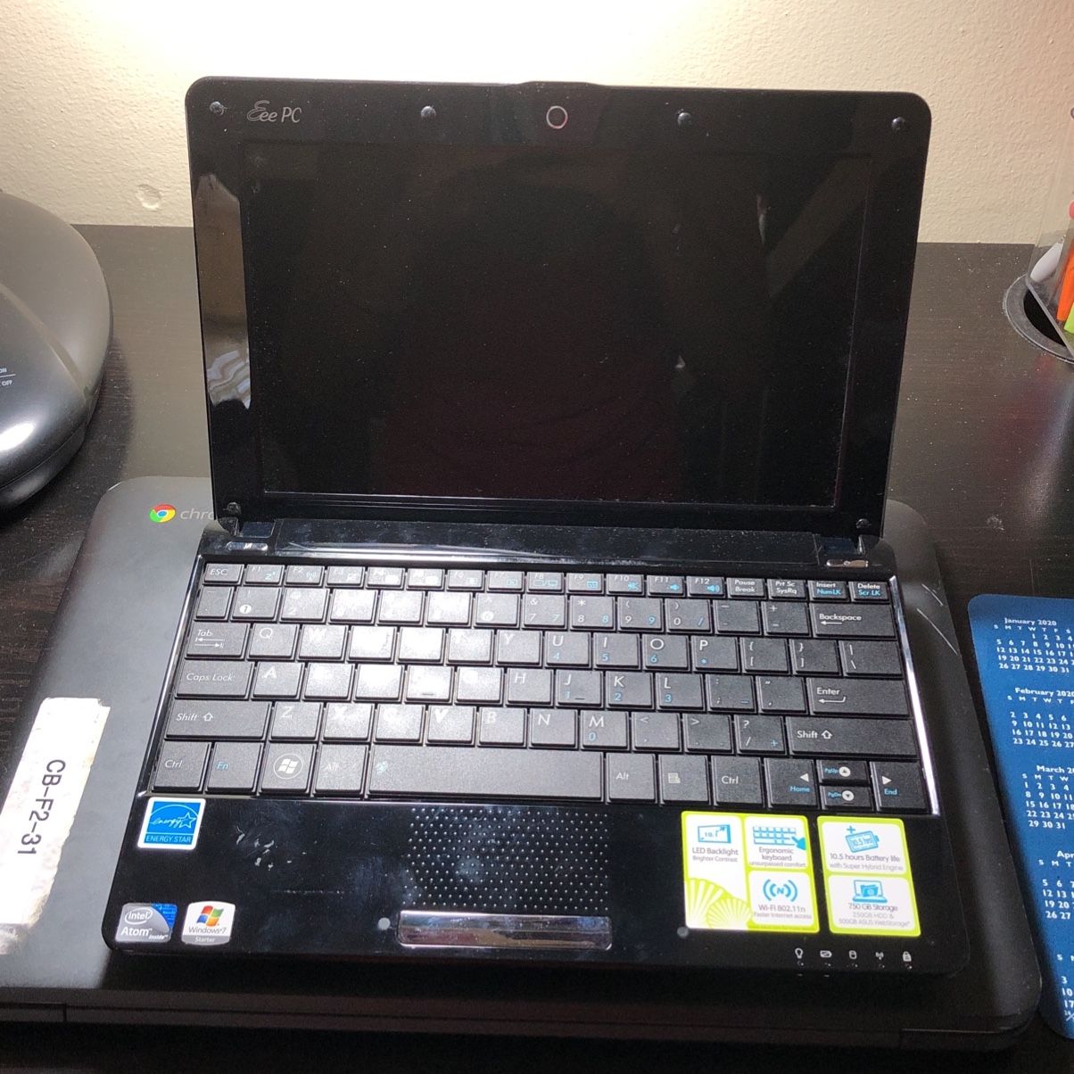Like new. Check pictures for details the battery has little damage cannot find the power cord 10.1” windows 7 intel atom 750gb