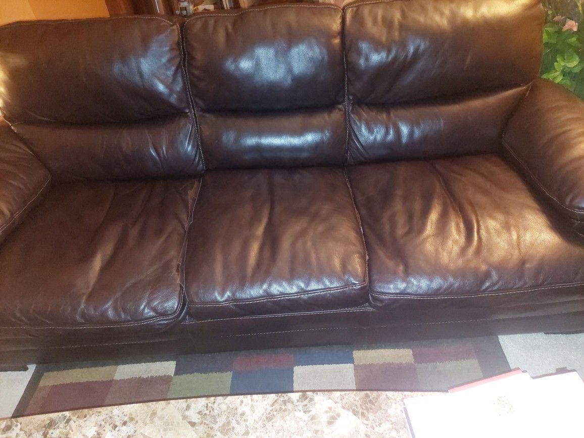 Ideal for comfort. 80 inch chocolate brown leather sofa. Normal wear and tare since 5 years ago. In great shape ππ½ not sold ! $125