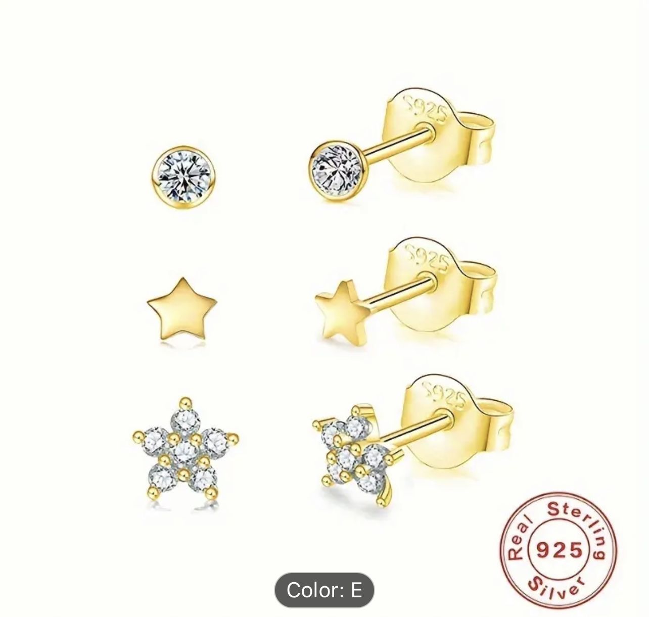 See Photos. These are single earrings. 3 Pieces / Set Sterling 925 Silver Hypoallergenic Ear Jewelry With Shiny Zircon Decor Stud Earrings Elegant Female Gift