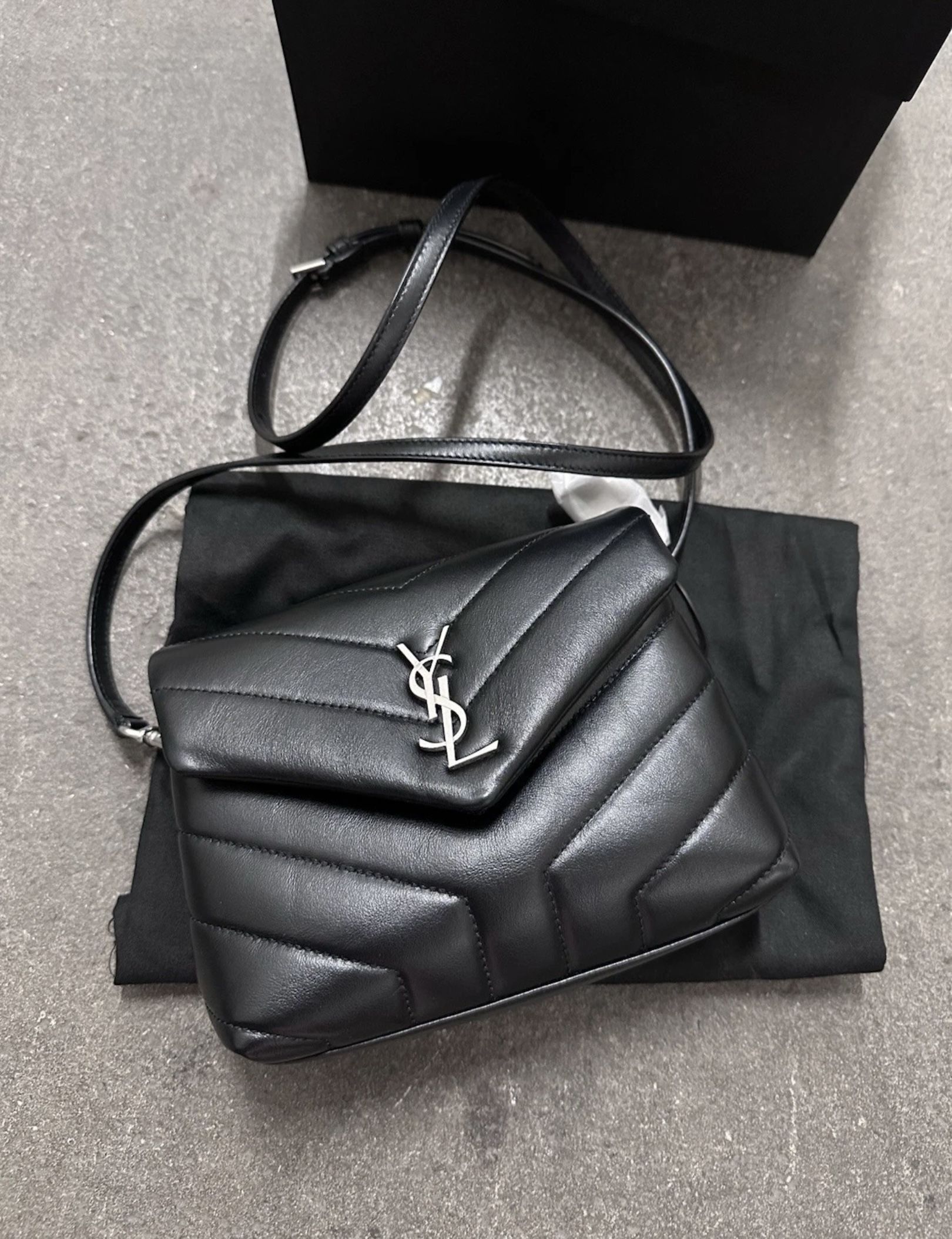 Saint Laurent Loulou Toy Quilted Matelasse Leather Crossbody Bag Black NWT