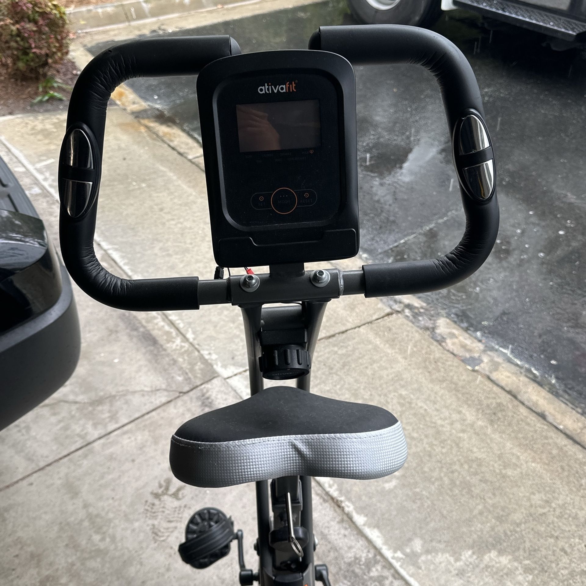 Features & details FOLDING & SPACE SAVING DESIGN: Our Ativafit folding exercise bike allows you to easily store it in a compact space. With 7 adjustable seat height options, you can easily find the perfect position for optimal comfort. The recommanded Height is 5.8''. The smooth-rolling wheels allow you to move the bike around your home. COMFORTAHLE SADDLE DESIGN: Our updated hollow design saddle enhances breathable and lasts a longer workout through the center cutout. With memory foam &wear-resistant PU leather for ergonomic Design, this exercise bike saddle can absorb discomfort, protecting your sit bones and lower back. MAGNETIC DRIVEN: The Ativafit folding exercise bike for home has 8 adjustable magnetic resistance levels, which provides more challenging or less strenuous cardio training. Magnetic workout bike is often quieter than other types of resistance. This makes it ideal for use in shared living spaces like office or apartments where noise can be a concern. STUDRY FRAME: Crafted from a robust alloy steel material, our indoor foldable exercise bike has a sturdy frame which is stable and durable. The weight capacity is 265LBS. LCD DISPLAY: Our indoor cycling bike for exercise features a wide display screen that is easy to read and shows all relevant workout information. Stay motivated and track your progress with the integrated LCD display which provides real-time feedback on essential workout metrics such as time, speed, calories and pulse, empowering you to monitor your performance IDEAL FOR YOU: It is a great choice for home, family, friends.Experience the pinnacle of convenience, efficiency, and performance with our folding exercise bike. Embark on your fitness journey today and elevate your workout routine to new heights.