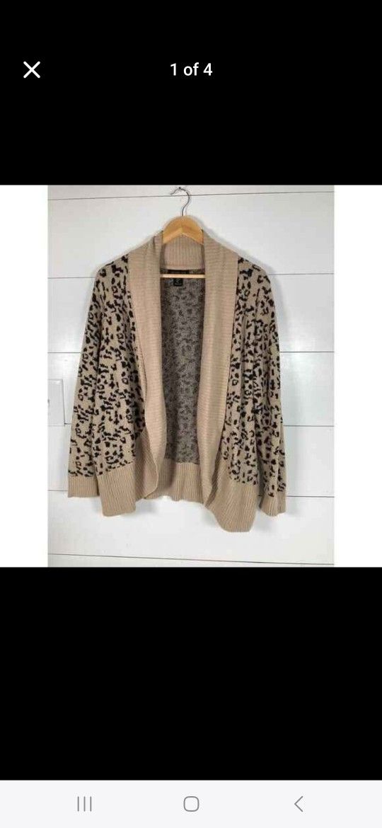 Ladies Rachel Zoe Open Front Animal Print Sweater Cardigan With Pockets. Size Medium.