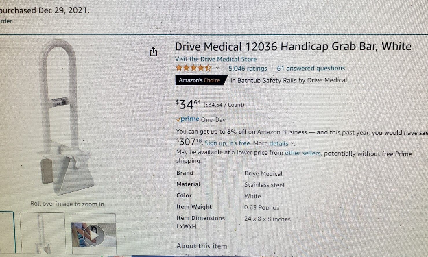Drive Medical 12036 Handicap Grab Bar